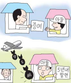ºÎµ¿»êÀ» Àڳ࿡°Ô Áõ¿©ÇÑ ÈÄ Àڳడ °ð ¹Ù·Î ¾çµµÇؼ ¾çµµ¼Òµæ¼¼¸¦ ȸÇÇÇÏ´Â ºÎÀÛ¿ëÀ» ¸·±â À§ÇÑ °ÍÀÔ´Ï´Ù. µû¶ó¼ Å« ¾ÆµéÀÌ Áõ¿©¹ÞÀº ÁÖÅÃÀ» ÆÈ·Á¸é, 5³âÀÌ Áö³ µÚ ¸ÅµµÇØ¾ß ÇÕ´Ï´Ù. 5³â ÈÄ Å« ¾ÆµéÀÌ 1°¡±¸ 1ÁÖÅÃÀÚ¶ó¸é ¾çµµ¼Òµæ¼¼ ºñ°ú¼¼ ÇýÅõµ ¹ÞÀ» ¼ö ÀÖ½À´Ï´Ù.