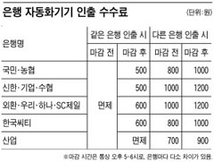 ÀºÇà ¼ö¼ö·á´Â ¿¹±Ý¡¤¿Üȯ¡¤´ëÃâ ¼ö¼ö·á µî 100¿© °¡Áö°¡ ³Ñ´Â´Ù. ÀÌ Áß ÀÚÁÖ ÀÌ¿ëÇÏ´Â ¼Û±Ý¼ö¼ö·áÀÇ °æ¿ì ÀºÇࡤ±Ý¾×¿¡ µû¶ó Á¦°¢°¢ÀÌ´Ù. °°Àº ÀºÇàÀ¸·Î ¼Û±ÝÇÒ ¶© ¸ðµç ÀºÇàÀÌ ÀÎÅͳݡ¤ÅÚ·¹¡¤¸ð¹ÙÀϹðÅ· ¼Û±Ý¼ö¼ö·á¸¦ ¹°¸®Áö ¾Ê´Â´Ù. ÀΰǺñ°¡ Àý¾àµÇ±â ¶§¹®ÀÌ´Ù. ±×·¯³ª ⱸ¸¦ ÀÌ¿ëÇϰųª ÀºÇ࿵¾÷ ³¡³ ÈÄ ÀÚµ¿È±â±â(CD¡¤ATM)¸¦ ÀÌ¿ëÇÒ ¶© ÀºÇึ´Ù ¼·Î ´Ù¸¥ ¼ö¼ö·á¸¦ ºÎ°úÇÑ´Ù¡´Ç¥ÂüÁ¶¡µ. »ê¾÷ÀºÇàÀº ±¹³»ÀºÇà Áß À¯ÀÏÇÏ°Ô ¿µ¾÷½Ã°£ ¿Ü ¼ö¼ö·á°¡ ¾ø´Ù. ÁöÁ¡ÀÌ ÀûÁö¸¸ ¿ì¸®ÀºÇà ÀÚµ¿È±â±â¸¦ »ç¿ëÇÒ ¼ö ÀÖ¾î Å« ºÒÆíÀÌ ¾ø´Ù.