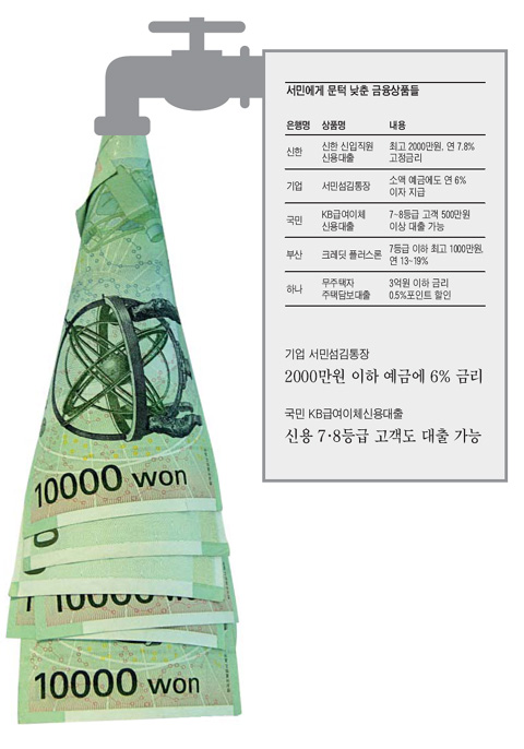 ¼öÀͼº¿¡¸¸ ¿ÃÀÎÇÏ´ø ÀºÇàµéÀÌ '¹®ÅÎ'À» ´ëÆø ³·Ãç º¸Åë»ç¶÷ ì±â±â¿¡ ³ª¼°í ÀÖ´Ù. ¿¹Àü¿£ ½Å¿ë´ëÃâÀ» ¹ÞÀ» ¼ö ¾ø¾ú´ø °« ÀÔ»çÇÑ ½ÅÀÔ»ç¿ø°ú 7µî±Þ ÀÌÇÏ Àú½Å¿ëÀÚ¸¦ À§ÇÑ ´ëÃâ »óǰÀ» ³»³õ´Â°¡ Çϸé, ¹«ÁÖÅà ¼¹Î¿¡°Ô ´ëÃ⠱ݸ®¸¦ ±ð¾ÆÁÖ°í ÀÖ´Ù. Ǭµ·¿¹±Ý¸¸ ¿ì´ëÇϰí, °Å¾×Àº °ÅÀýÇÏ´Â ÅëÀåµµ µîÀåÇß´Ù.