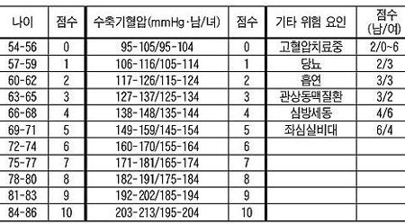 <Ç¥1>³úÁ¹Áß À§Çè¿äÀΰú Á¡¼ö