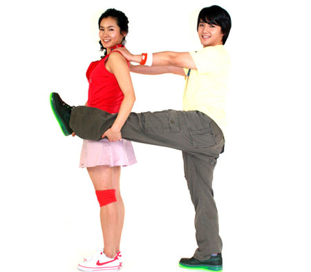 ¿©ÀÚ ÆÄÆ®³Ê´Â ¹ßÀ» Âß Æì¼ »¸À¸¸ç ±äÀåÀ» Ç®°í »óü¸¦ µÚ·Î Á¥Èù´Ù.