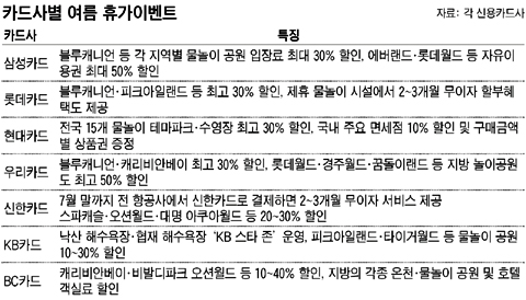 ½ÅÇÑÄ«µå´Â ¿À´Â 14ÀϺÎÅÍ 8¿ù13ÀϱîÁö ȨÆäÀÌÁö À̺¥Æ®³¿¡ ÈÞ°¡°èȹÀ» ÀÀ¸ðÇÑ °í°´ ÃÑ 439¸íÀ» »Ì¾Æ ÈÞ°¡ºñ¸¦ ÁØ´Ù. 1µî(1¸í) 500¸¸ ¿ø, 2µî(3¸í) 300¸¸ ¿ø, 3µî(5¸í) 100¸¸ ¿ø, 4µî(30¸í) 50¸¸ ¿ø µîÀÌ´Ù. ·Ôµ¥Ä«µåµµ 6~7¿ù µÎ ´Þ µ¿¾È ·Ôµ¥Ä«µå¸¦ ½Å±Ô·Î ¹ß±Þ ¹Þ´Â ȸ¿ø Áß ÃÑ 29¸íÀ» ÃßÃ·ÇØ 300¸¸ ¿ø ¿©Çà»óǰ±Ç, ´ÑÅÙµµÀ§(Wii) µîÀ» ÁõÁ¤ÇÑ´Ù.