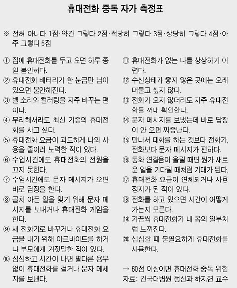 ¾ÆÁ÷±îÁö ÀÎÅͳÝÀ̳ª ¾à¹°¸¸Å Áßµ¶ÀÇ °³³äÀÌ ÀϹÝÀûÀÌÁö´Â ¾ÊÁö¸¸, Àü¹®°¡µéÀº ÈÞ´ëÀüȰ¡ ¾øÀ¸¸é ºÒ¾ÈÇϰí, Ç×»ó ÈÞ´ëÀüȸ¦ ¸¸ÁöÀ۰Ÿ®¸ç, Åëȸ¦ Çϰųª ¹®ÀÚ¸¦ º¸³»´Â µîÀÇ ÇൿÀ» ÇØ¾ß ¸¶À½ÀÌ ÆíÇÑ Á¤µµ¸¦ 'Áßµ¶ À§Çè ±×·ì'À¸·Î º¸°í ÀÖ´Ù. Àü¹®ÀǵéÀº ƯÈ÷ ¹®ÀÚ Àü¼ÛÀÌ ÀüÈ ÅëȺ¸´Ù Á¤½Å°Ç°À̳ª ¼ö¸é¿¡ ´õ À§ÇèÇÒ ¼ö ÀÖ´Ù°í ÁöÀûÇÑ´Ù. °Ç±¹´ëº´¿ø Á¤½Å°ú ÇÏÁöÇö ±³¼ö´Â "ÅëÈ´Â µ¿½ÃÀû Ä¿¹Â´ÏÄÉÀ̼ÇÀÌÁö¸¸ ¹®ÀÚ´Â ºñµ¿½ÃÀû Ä¿¹Â´ÏÄÉÀ̼ÇÀÌ¾î¼ ¸Þ½ÃÁö¸¦ º¸³½ µÚ ´äÀ» ±â´Ù¸®´Â °úÁ¤¿¡¼ ¸¶À½ÀÌ ºÒ¾ÈÇϰí ÃÊÁ¶ÇØÁö°Ô µÈ´Ù"°í ¸»Çß´Ù.