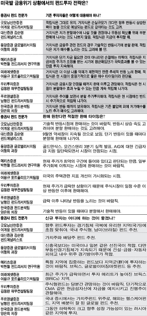 ÀÌ °°Àº ¹Ì±¹¹ß ±ÝÀ¶À§±â¸¦ ¹Ù¶óº¸´Â ±¹³» ÆÝµåÅõÀÚÀÚµéÀÇ ¸¶À½ÀÌ ÆíÇÒ ¸® ¾ø´Ù. '¾Ç' ¼Ò¸® ³ª´Â Áõ½Ã Æø¶ô¿¡ '³» ÆÝµå´Â ¾î¶±ÇØ'¶õ ź½ÄÀÌ Àý·Î ³ª¿ÔÀ» Å×´Ï ¸»ÀÌ´Ù. ´õ±¸³ª Áõ½Ã Àü¹®°¡µéÀº ÀÌ °°Àº ¹Ì±¹¹ß ±ÝÀ¶À§±â°¡ ´Ü±â°£¿¡ Á¤¸®µÉ °Í °°Áö ¾Ê´Ù´Â ºñ°üÀûÀÎ Àü¸Á¸¶Àú ³»³õ°í ÀÖ´Ù. ±×·¸´Ù¸é ³»°¡ °®°í ÀÖ´Â ÆÝµå´Â ¾î¶»°Ô ÇØ¾ß ÇÏ´Â °ÍÀϱî. ±¹³» ÆÝµå Àü¹®°¡µé¿¡°Ô ÇâÈÄ ÆÝµå¿î¿ë ´ëÃ¥¿¡ ´ëÇØ ¹°¾îºÃ´Ù.