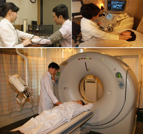 Ç÷°ü°Ë»ç 1´Ü°è: Ç÷°üÀÇ °æÁ÷ Á¤µµ¸¦ ¾Ë ¼ö ÀÖ´Â ¸Æ¾Ð °Ë»ç(À§»çÁø ¿ÞÂÊ), Ç÷°ü°Ë»ç 2´Ü°è: ³úÁ¹Áß À§Çèµµ¸¦ ¾Ë¾Æº¸´Â °æµ¿¸ÆÃÊÀ½ÆÄ °Ë»ç(À§»çÁø ¿À¸¥ÂÊ), Ç÷°ü°Ë»ç 3´Ü°è: Çù½ÉÁõ, ½É±Ù°æ»öÁõÀÇ À§Çèµµ¸¦ ¾Ë¾Æº¸´Â ½ÉÀå CT(¾Æ·¡ »çÁø). /ÇコÁ¶¼±DB