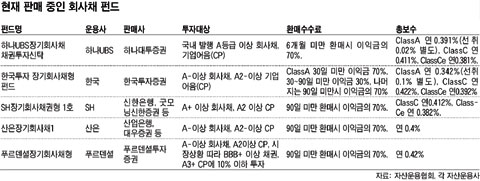 ÀÏ´Ü À̹ø¿¡ ȸ»çäÆÝµå¸¦ ¹ßÇàÇÏ´Â ÆÝµåµéÀº ÃÖ¼Ò A-µî±Þ ÀÌ»óÀÇ Ã¤±Ç°ú A2- ÀÌ»ó µî±ÞÀÇ ±â¾÷¾îÀ½(CP)¿¡ ÅõÀÚÇÑ´Ù°í ¹àÈ÷°í ÀÖ´Ù. ä±Ç¡¤±â¾÷¾îÀ½ µî¿¡ ´ëÇØ ½Å¿ë µî±ÞÀ» ¸Å±â´Â Çѱ¹½Å¿ëÆò°¡¿¡ µû¸£¸é Áö³ 1998³â ÀÌÈÄ BBB ÀÌ»ó µî±Þ ä±ÇÀÇ °æ¿ì ÇØ´ç ȸ»çÀÇ ¿öÅ©¾Æ¿ô µîÀ¸·Î ÀÎÇØ ȸ»çä »óȯÀÌ À¯¿¹µÈ ÀûÀº ÀÖÁö¸¸ ºÎµµ°¡ ³ °æ¿ì´Â ¾ø¾ú´ø °ÍÀ¸·Î ³ªÅ¸³µ´Ù.