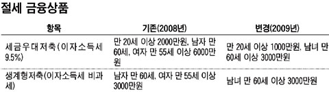 ÀÌÀÚ¿¡ ´ëÇØ 9.5%¸¸ ¼¼±ÝÀ¸·Î ³»¸é µÇ´Â ¼¼±Ý¿ì´ëÀúÃàÀº ³»³âºÎÅÍ °¡ÀÔ Çѵµ°¡ ¼ºÀÎ 1Àδç 2000¸¸¿ø¿¡¼ 1000¸¸¿øÀ¸·Î ÁÙ¾îµç´Ù. ¸¸ 60¼¼ ÀÌ»ó °í·É ³²³à´Â °¡ÀÔ Çѵµ°¡ 6000¸¸¿ø¿¡¼ 3000¸¸¿øÀ¸·Î ÁÙ¾îµç´Ù. ¿ÃÇØ´Â ¿©¼º ¸¸ 55¼¼ ÀÌ»óÀ̸é 6000¸¸¿ø±îÁö ¼¼±Ý¿ì´ëÀúÃà¿¡ °¡ÀÔÇÒ ¼ö ÀÖ¾úÁö¸¸ ³»³âºÎÅÍ´Â ¿©¼ºÀÇ °æ¿ì ¸¸ 60¼¼ ÀÌ»óÀ¸·Î °¡ÀÔ±âÁصµ ³ô¾ÆÁø´Ù.
