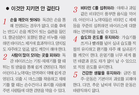 ÇѾç´ëº´¿ø È£Èí±â³»°ú ±è»óÇå ±³¼ö´Â ÇÏÁö¸¸ "Çö »óÅ¿¡¼´Â ±»ÀÌ µ¶°¨ ¹é½ÅÀ» ¸ÂÀ» Çʿ䰡 ¾øÀ» °Í °°´Ù"°í ¸»Çß´Ù. ±è ±³¼ö´Â "¼Õ ¾Ä±â¸¦ öÀúÈ÷ ÇÏ°í ¸¶½ºÅ© Âø¿ë, »ç¶÷ÀÌ ¸¹Àº °÷¿¡ °¡Áö ¾Ê´Â µî ÀϹÝÀûÀÌ µ¶°¨ ¿¹¹æ¹ýÀ» ½ÇõÇÏ´Â °ÍÀÌ ´õ Áß¿äÇÏ´Ù"°í ¸»Çß´Ù. µ¶°¨Àº °¨±â¿Í ´Þ¸® '°©ÀÚ±â' °í¿°ú µÎÅë µîÀÌ ³ªÅ¸³ª¹Ç·Î ÀÌ·± Áõ¼¼°¡ ÀÖÀ¸¸é ¹Ù·Î º´¿øÀ» ã¾Æ Ä¡·á¸¦ ¹Þ¾Æ¾ß ÇÑ´Ù.