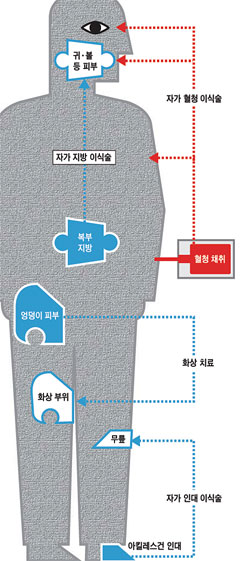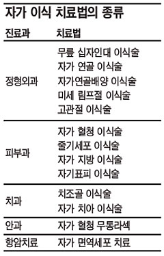 ÀÚ½ÅÀÇ Ç÷¾×, »À, Ä¡¾Æ µîÀ» ÀÌ¿ëÇÑ Ä¡·á¹ýÀÌ È®»êµÇ°í ÀÖ´Ù. ³» °ÍÀ» ÀÌ¿ëÇÑ Ä¡·á´Â ¿¹Àü¿¡µµ ÀÖ¾ú´Ù. ´ëÇ¥ÀûÀÎ °ÍÀÌ È»ó ȯÀÚÀÇ ÇǺΠÀ̽ļúÀ̳ª ´ë¸Ó¸® ¸ð¹ß À̽ļú µîÀÌ´Ù.