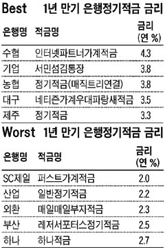 ³·Àº ±Ý¸®¿¡µµ ¾ÈÀüÇÑ Á¾Àãµ·À» ¸ðÀ» ¼ö ÀÖ´Â ÀºÇàÁ¤±âÀû±ÝÀÌ ºÒȲ±â¿¡ Àα⸦ ¾ò°í ÀÖ´Ù. 4¿ù ¸» ÇöÀç Á¤±âÀû±Ý Àܾ×Àº 17Á¶9459¾ï¿øÀ» ±â·Ï, 2008³â 1¿ù(12Á¶9089¾ï¿ø) ÀÌÈÄ 15°³¿ù ¿¬¼Ó Áõ°¡Çß´Ù. 1ÀÏ ÀºÇ࿬ÇÕȸ ȨÆäÀÌÁö¿¡ °¢ ÀºÇàÀÌ °Ô½ÃÇÑ 1³â ¸¸±â Á¤±âÀû±Ý ±Ý¸®¸¦ º¸¸é ¼öÇùÀÇ 'ÀÎÅÍ³ÝÆÄÆ®³Ê°¡°èÀû±Ý'ÀÌ ¿¬ 4.3%·Î °¡Àå ³ô¾Ò°í, SCÁ¦ÀÏÀºÇàÀÇ 'ÆÛ½ºÆ®°¡°èÀû±Ý'ÀÌ ¿¬ 2%·Î °¡Àå ³·¾Ò´Ù.
