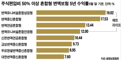 ÇÑÆí ÁÖ½Ä ÅõÀÚ ºñÁßÀÌ 50% ÀÌ»óÀÎ 8°³ º¯¾×º¸ÇèÀº Áö³ 5³â°£ ¿¬Æò±Õ 12.3%ÀÇ ¼öÀÍ·üÀ» ±â·ÏÇß´Ù. ÀÌ Áß Àý¹ÝÀº ¿¬ 12% ÀÌ»óÀ» ±â·ÏÇß´Ù. ¿¬ 19.02%ÀÇ ¼öÀÍ·üÀ» ¿Ã¸° º¸Çèµµ ÀÖ¾ú´Ù. ³ª¸ÓÁö Àý¹ÝÀº ¿¬ 7%´ëºÎÅÍ 10%´ë±îÁö °í¸£°Ô ºÐÆ÷Çß´Ù.