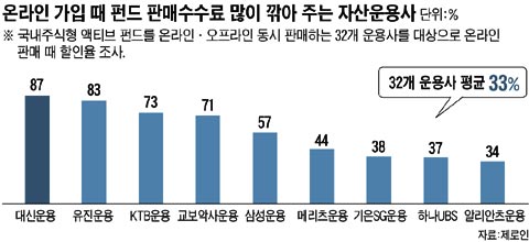 ÆÝµå¸¦ ¿Â¶óÀÎÀ¸·Î °¡ÀÔÇÏ¸é ÆÇ¸Å¼ö¼ö·á°¡ ÇÒÀεȴÙ. º»Áö°¡ ÆÝµåÆò°¡ Àü¹®¾÷ü Á¦·ÎÀο¡ ÀÇ·ÚÇØ ºÐ¼®ÇÑ °á°ú, ±¹³»ÁÖ½ÄÇü ¾×Ƽºê ÆÝµåÀÇ °æ¿ì ¿Â¶óÀÎ °¡ÀÔÀÌ ¿ÀÇÁ¶óÀÎ °¡ÀÔ¿¡ ºñÇØ ÆÝµå ÆÇ¸Å¼ö¼ö·á¸¦ Æò±Õ 33% ¾Æ³¥ ¼ö ÀÖ´Â °ÍÀ¸·Î ³ªÅ¸³µ´Ù. ÇÏÁö¸¸ ÀÚ»ê¿î¿ë»çº°·Î ÇÒÀÎÀ² Â÷ÀÌ´Â ÄÇ´Ù. ÀÏ¹Ý ±¹³»ÁÖ½ÄÇü ÆÝµå Áß ¿Â¶óÀÎ °¡ÀÔ ¶§ ÇÒÀÎÀ²ÀÌ °¡Àå ³ôÀº ´ë½Å¿î¿ë(87%)°ú °¡Àå ³·Àº ½Å¿µ¿î¿ë(10%) °£¿¡ 77%Æ÷ÀÎÆ®³ª Â÷À̰¡ ³µ´Ù. ÇØ¿ÜÁÖ½ÄÇü ÆÝµåÀÇ °æ¿ì¿¡µµ ±³º¸¾Ç»ç¿î¿ë(60%)°ú ½´·Î´õ¿î¿ë(4%) °£¿¡ Â÷À̰¡ ÄÇ´Ù.