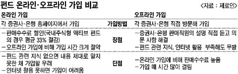 À̼öÁø Á¦·ÎÀÎ ÆÝµå¾Ö³Î¸®½ºÆ®´Â "»ó´ãÀº ¿ÀÇÁ¶óÀÎÀ¸·Î ¹Þ°í, °¡ÀÔÀº ¿Â¶óÀÎÀ¸·Î ÇÏ¸é °¢°¢ÀÇ ÀåÁ¡¸¸ »ì¸± ¼ö ÀÖ´Ù"°í ±ÇÀ¯Çß´Ù. ¼ö¼ö·á°¡ ½Î´Ù´Â ÀÌÀ¯¸¸À¸·Î ÆÝµå¸¦ ¼±ÅÃÇÒ °ÍÀº ¾Æ´Ï±â ¶§¹®¿¡, Á÷Á¢ Áõ±Ç»ç¡¤ÀºÇàÀ» ã¾Æ°¡ ÆÝµåÀÇ ÅõÀÚ ³»¿ë°ú ¼öÀÍ·ü¿¡ °üÇÑ ¼³¸íÀ» µè°í ÃæºÐÈ÷ °ËÅäÇÏ°í ³ª¼ ¿Â¶óÀÎÀ¸·Î °¡ÀÔÇÏ´Â ¹æ¹ýÀÌ ÁÁ´Ù´Â °ÍÀÌ´Ù. ¶Ç ¿Â¶óÀÎ °¡ÀÔÀÇ °æ¿ì¿¡µµ °Ô½ÃÆÇ, ÀüÈ¿¹¾à, ¸Þ½ÅÀú¸¦ ÅëÇØ Ãß°¡ »ó´ãÀ» ¹ÞÀ» ¼ö Àֱ⠶§¹®¿¡ À̸¦ ÅëÇØ ³²Àº ±Ã±ÝÁõÀ» ÇØ°áÇÒ ¼öµµ ÀÖ´Ù.