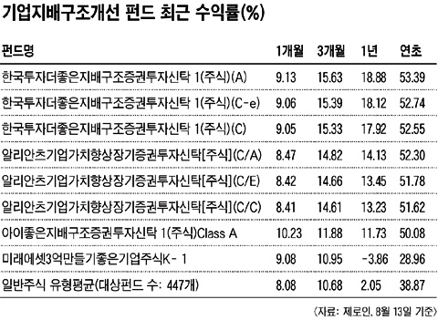 Çѱ¹Åõ½Å¿î¿ëÀÇ 'Çѱ¹ÅõÀÚ´õÁÁÀºÁö¹è±¸Á¶Áõ±ÇÅõÀÚ½ÅŹ1(ÁÖ½Ä)A'ÀÇ ¿¬ÃÊ ÈÄ ¼öÀÍ·üÀº 53.39%·Î ±¹³» ÁÖ½ÄÇüÆÝµå Æò±Õº¸´Ù ¾à 15%Æ÷ÀÎÆ® Á¤µµ ³ô´Ù. '¾Ë¸®¾ÈÃ÷±â¾÷°¡Ä¡Çâ»óÀå±âÁõ±ÇÅõÀÚ½ÅŹ(ÁÖ½Ä)C/A'µµ ¿ÃÇØ µé¾î 52.3%ÀÇ ¼öÀÍ·üÀ» ±â·Ï ÁßÀ̰í,