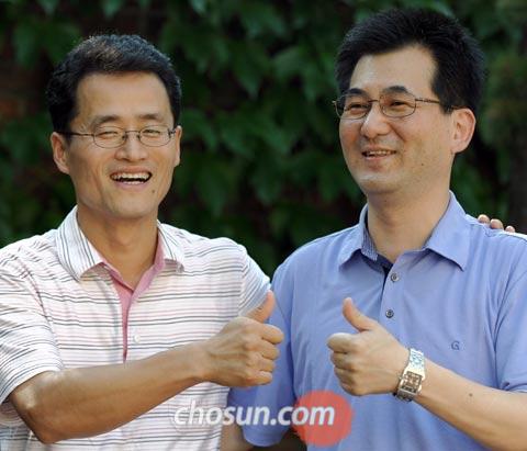 ¡°ÀÚ³×°¡ ÇØ¾ß ÇÒ ÀÏÀÌ ¸¹¾Æ.¡± ¡°¾Æ´Ï¾ß ³ Àڳ׸¸ ¹Ï´Â´Ù´Ï±î.¡± 30¿©³â°£ Ä¡¿ÇÏ°Ô °æÀïÇϸ鼵µ ÁøÇÑ ¿ìÁ¤À» ³ª´²¿Â ¾çÀçÈ£(¿ÞÂÊ) ÃÖ±Ôº´ µÎ µ¿°©³»±â°¡ ¼·Î ¾öÁö¼Õ°¡¶ôÀ» ²ÅÀ¸¸ç »ó´ë¸¦ ĪÂùÇϰí ÀÖ´Ù./ÃÖ¼øÈ£ ±âÀÚ choish@chosun.com