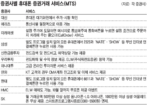 »ï¼ºÁõ±ÇÀº ÀÏ¹Ý ÈÞ´ëÆùÀ¸·Î À̵¿Åë½Å»ç¿¡ °ü°è¾øÀÌ Áֽİŷ¡¡¤Á¤º¸Á¶È¸¸¦ ÇÒ ¼ö ÀÖ´Â ¼ºñ½º¸¦ Á¦°øÇϰí ÀÖ´Ù. º°µµÀÇ ÇÁ·Î±×·¥À» ³»·Á¹ÞÀ» Çʿ䰡 ¾ø´Ù. ÈÞ´ëÆù¿¡¼ '2323'À» ´©¸¥ µÚ 'NATE'¡¤'SHOW' µî ÀÎÅÍ³Ý ¿¬°á¹öư¸¸ ´©¸£¸é µÈ´Ù. 'ÁÖ¿äÃßõÁ¾¸ñ' µî »ï¼ºÁõ±Ç ¸®¼Ä¡¼¾ÅͰ¡ Á¦°øÇÏ´Â Á¤º¸µéÀ» ¼Õ½±°Ô º¼ ¼ö ÀÖ´Ù. Çö´ëÁõ±Çµµ '6611'À» ´©¸¥ µÚ ÀÎÅÍ³Ý ¿¬°á¹öư¸¸ ´©¸£¸é »ï¼ºÁõ±Ç°ú ºñ½ÁÇÑ ¼ºñ½º¸¦ Á¦°øÇÏ´Â ÈÞ´ëÆù ½Ã½ºÅÛÀ» ¿î¿µ ÁßÀÌ´Ù.