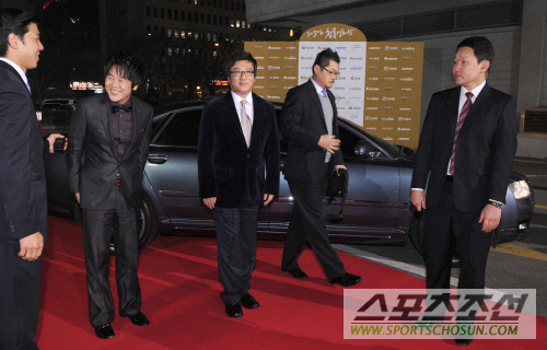 ¹Úº¸¿µ, Â÷ÅÂÇö, ¿Õ¼®ÇöÀÌ ·¹µåÄ«Æê À§¿¡ ¸¶·ÃµÈÆ÷Åä¿ù¿¡¼ Æ÷Á ÃëÇϰí ÀÖ´Ù.