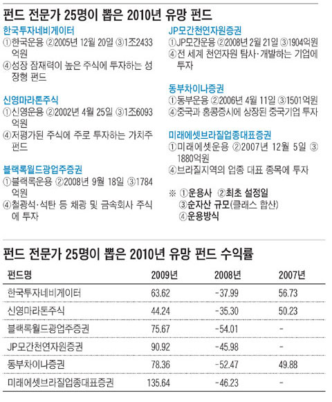 ¿ÃÇØ´Â ¾î¶² ÆÝµå¿¡ µé¾î¾ß ÇÒ±î? ±¹³» Áõ±Ç»ç 25°÷ÀÇ ÆÝµå Àü¹®°¡µé·ÎºÎÅÍ 2010³â À¯¸Á ÆÝµå¸¦ 3°³¾¿ Ãßõ¹Þ¾Ò´Ù. Àü¹®°¡µéÀº À۳⠸¹ÀÌ ¿Ã¶ú´ø