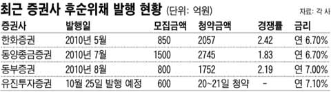 À¯ÁøÅõÀÚÁõ±ÇÀº ¿À´Â 20~21ÀÏ 600¾ï¿ø ±Ô¸ðÀÇ ÈļøÀ§Ã¤ û¾à¿¡ ³ª¼±´Ù. 5³â6°³¿ù ¸¸±â¿¡ 7.1%ÀÇ ±Ý¸®¸¦ Àû¿ëÇØ ¸Å¿ù ÀÌÀÚ¸¦ Áö±ÞÇÑ´Ù. 1¾ï¿øÀ» ÅõÀÚÇÑ´Ù¸é ¼¼Àü ±âÁØÀ¸·Î 3905¸¸¿øÀÇ ÀÌÀÚ¸¦ ¸Å¿ù 59¸¸1600¿ø¾¿ ³ª´² ¹ÞÀ» ¼ö ÀÖ´Â ¼ÀÀÌ´Ù. ¾Õ¼ Áö³ 8¿ù ¸»¿¡ µ¿ºÎÁõ±ÇÀÌ ¹ßÇàÇÑ ÈļøÀ§Ã¤¿¡´Â 800¾ï¿ø ¸ðÁý¿¡ 1750¾ï¿ø ÀÌ»óÀÌ ¸ô·È´Ù. 7¿ù ¸»¿¡ 1500¾ï¿øÀÇ ÈļøÀ§Ã¤¸¦ ¹ßÇàÇÑ µ¿¾çÁ¾±ÝÁõ±Ç¿¡µµ 2700¾ï¿ø ÀÌ»óÀÌ Ã»¾àµÆ´Ù. ÇÑÈÁõ±Çµµ 850¾ï¿ø ¸ðÁý¿¡ 2000¾ï¿ø ÀÌ»óÀÌ ¸ô·È´Ù.