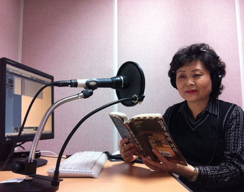 Ä¿´Ù¶õ ÇìµåÆùÀ» ³¢°í ¸¶ÀÌÅ© ¾Õ¿¡ ¾É¾Æ ½Ã°¢Àå¾ÖÀÎÀ» À§ÇØ Ã¥À» ³¶µ¶ÇÏ´Â ¸ð½À.