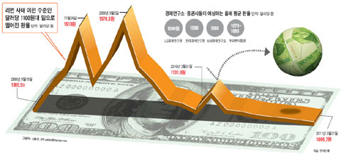 ¿Üȯ Àü¹®°¡µéÀº ¿ÃÇØ ¸» ȯÀ²ÀÌ ´Þ·¯´ç 1050¿ø ¾ÈÆÆ±îÁö ¶³¾îÁú °ÍÀ¸·Î ³»´Ùº¸°í ÀÖ´Ù. ȯÀ²ÀÌ Ç϶ôÇÏ¸é¼ ¼öÀÔ ¹°°¡´Â ³·¾ÆÁö´Â È¿°ú°¡ ÀÖÁö¸¸, ¼öÃâ¾÷üµéÀº °¡°Ý °æÀï·ÂÀÌ ¶³¾îÁ® ¼öÃâ¿¡ Â÷ÁúÀÌ »ý±æ ¼ö ÀÖ´Ù.