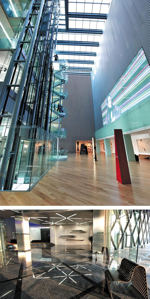 1ÃþºÎÅÍ 5Ãþ õÀå±îÁö »½ ¶Õ¾î ¸¸µç ¾ÆÆ®¸®¿ò. ¿¹¼ú ÀÛǰÀ» Àü½ÃÇÏ´Â °ø°£ÀÌ´Ù(»çÁø À§). LED Á¶¸íÀ» ±ñ ¹Ù´Ú. º®¿¡ ºÙÀº ¼³Ä¡¹°Àº À̶óÅ© Ãâ½Å ¿µ±¹ °ÇÃà°¡ ÀÚÇÏ Çϵðµå ÀÛǰ(¾Æ·¡).