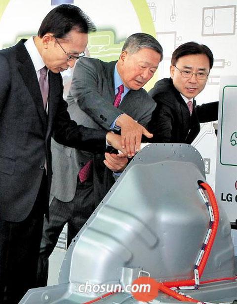 ±¸º»¹« LG ȸÀåÀº À̸í¹Ú ´ëÅë·É, ¹Ì±¹ GMÀÇ ½ºÆ¼ºì °Å½ºÅ°(Girsky) ¼ö¼® ºÎȸÀå, ±¹³»¿Ü ±Íºóµé°ú ¼¼°è ÃÖ´ë Àü±âÂ÷¿ë 2Â÷ÀüÁö ¹èÅ͸® °øÀåÀÇ ÁذøÀ» ¾Ë¸®´Â ÅÍÄ¡ ¹öưÀ» ´·¶´Ù.