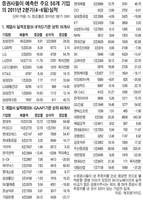 2ºÐ±â(4~6¿ù)¿¡ ±¹³» ÁÖ¿ä ±â¾÷ ½ÇÀûÀÌ ´Ù¼Ò È£ÀüµÈ °ÍÀ¸·Î ³ªÅ¸³µ´Ù. ´Ù¸¸ Àü³â °°Àº ±â°£°ú ºñ±³Çغ¼ °æ¿ì IT(Á¤º¸±â¼ú)±â¾÷ÀÇ ½ÇÀûÀº ¾ÆÁ÷µµ Å©°Ô ºÎÁøÇß´Ù.
