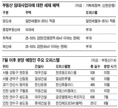 ±×µ¿¾È ÁÖ°Å¿ë ¿ÀÇǽºÅÚÀº ÀÓ´ë»ç¾÷À» ÇØµµ ÀÌ °°Àº ¼¼Á¦ ÇýÅÃÀ» ´©¸± ¼ö ¾ø¾úÁö¸¸ ÁÖÅà ÀÓ´ë»ç¾÷ÀÚ·Î µî·ÏÀÌ Çã¿ëµÇ¸é Àý¼¼ È¿°ú°¡ ³ô¾ÆÁú Àü¸ÁÀÌ´Ù. ±¹ÅäºÎ °ü°èÀÚ´Â "ÁÖ°Å¿ë ¿ÀÇǽºÅÚµµ ÀÏ¹Ý ÁÖÅðú µ¿ÀÏÇÑ ¼¼Á¦ÇýÅÃÀ» ÁÙ °ÍÀÎÁö, Â÷µîÀ» µÑ °ÍÀÎÁö´Â ¿¬±¸¿ë¿ª °á°ú¸¦ º¸°í °áÁ¤ÇÒ ¿¹Á¤"À̶ó°í ¸»Çß´Ù. ¿ÀÇǽºÅÚÀÇ ÁÖÅà ÀÓ´ë»ç¾÷ÀÚ Çã¿ëÀº À̸£¸é ¿¬¸»ºÎÅÍ °¡´ÉÇÒ Àü¸ÁÀÌ´Ù. ´Ù¸¸ ÀÓ´ëÁÖÅùý °³Á¤ ÀýÂ÷¸¦ ¹â¾Æ¾ß ÇØ Àû¿ë ½Ã±â°¡ ´õ ´Ê¾îÁú ¼öµµ ÀÖ´Ù.