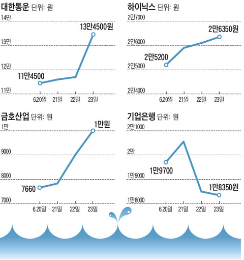 ´Ù¸¸ ¸Å°¢ À̽´°¡ ÁÖ°¡¿¡ Ç×»ó ÁÁÀº °Í¸¸Àº ¾Æ´Ï´Ù. ÀÌ´Þ ÃÊ Çö´ëÁß°ø¾÷ÀÌ À¯·ÂÇÑ ÇÏÀ̴нº Àμö Èĺ¸ÀÚ·Î °Å·ÐµÇÀÚ µÎ ±â¾÷ÀÇ ÁÖ°¡´Â µ¿¹Ý ±Þ¶ôÇß´Ù.