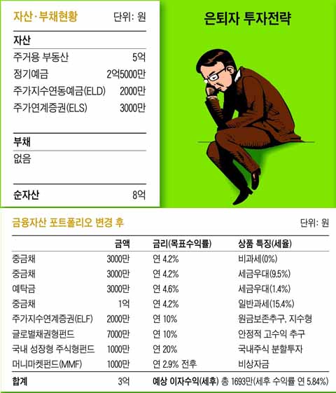 30¿©³âÀÇ Á÷Àå»ýȰÀ» ÅëÇØ ¸ðÀº µ·À¸·Î ½Ã°¡ 5¾ï¿øÀÎ ¾ÆÆÄÆ®¸¦ ¸¶·ÃÇØ »ì°í ÀÖ°í, ±ÝÀ¶ÀÚ»êÀº ÅðÁ÷±Ý±îÁö ÇÕÃÄ 3¾ï¿ø°¡·® µÈ´Ù. ÀºÅð ÈÄ¿£ ¸Å´Þ 70¸¸¿ø¾¿ ³ª¿À´Â ±¹¹Î¿¬±Ý°ú ±ÝÀ¶ÀÚ»ê ÀÌÀÚ·Î »ýȰºñ¸¦ Ãæ´çÇØ ¿Ô´Ù. ±×·±µ¥ ÃÖ±Ù ¸î ³â °£ ¹°°¡»ó½Â·üÀ» µû¶óÀâÁö ¸øÇÏ´Â ½ÇÁú±Ý¸® ¸¶À̳ʽº ½Ã´ë°¡ °è¼ÓµÇ¸é¼ °ÆÁ¤ÀÌ Ä¿Á³´Ù. ¸Å´Þ ¾Æ²¸ »ì¾Æµµ »ýȰºñ°¡ 200¸¸¿ø¾¿ µé¾î°¡´Âµ¥, ÀÌÀÚ¼öÀÍÀº ¿ù 90¸¸¿ø¿¡ ±×Ä¡´Ù º¸´Ï ¿ø±Ý¿¡µµ ¼ÕÀ» ´ë¾ß ÇÒ »óȲÀÌ ¿Ô´Ù. µÇµµ·Ï ÀÌÀڷθ¸ »ýȰÇÏ°í ¿ø±Ý¿¡´Â õõÈ÷ ¼ÕÀ» ´ë°í ½Í´Ù´Â °¾¾´Â Á¤±â¿¹±Ýº¸´Ù 1~2%Æ÷ÀÎÆ® Á¤µµ ÀÌÀÚ¸¦ ´õ ¹Þ¾Æ ÀÌÀÚ¿Í ¿¬±Ý¸¸À¸·Î »ýȰÇÒ ¼ö ÀÖ´Â Àü·«À» Â¥°í ½Í¾î ¸Ó´Ï¼½¼Ç MÀÇ ¹®À» µÎµå·È´Ù.