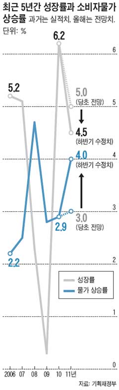 Á¤ºÎ°¡ 747°ø¾àÀ» Á¢¾î¾ß¸¸ ÇÏ°Ô µÈ °ÍÀº ¾Ö´çÃÊ ¸ñÇ¥ ÀÚü°¡ ½ÇÇö °¡´É¼ºÀÌ ³·¾Ò´ø µ¥´Ù ±Û·Î¹ú ±ÝÀ¶À§±â¶ó´Â ¿¹»óÄ¡ ¸øÇÑ ´ëÇü À§±â°¡ ´ÚÃÆ°í, ¿Ã µé¾î¼± ¹°°¡ ºÒ¾ÈÀÌ ½É°¢ÇØÁ³±â ¶§¹®ÀÌ´Ù. ¹°°¡»ó½Â·üÀº ¿Ã µé¾î 1¿ù ÀÌÈÄ 5°³¿ù ¿¬¼Ó 4%´ë °í°ø ÇàÁøÀ» Çϰí ÀÖ´Ù. 4%°¡ ³Ñ´Â ¹°°¡´Â ¿ÜȯÀ§±â ´ç½ÃÀÎ 1998³â 5.8%¿Í ±Û·Î¹ú ±ÝÀ¶À§±â¸¦ °Þ´ø 2008³â 4.9% ÀÌÈÄ Ã³À½ÀÌ´Ù. ¼ºÅÂÀ± ¿¬¼¼´ë ±³¼ö´Â "¹«¸®ÇÑ ¼ºÀå ¸ñÇ¥¸¦ ³»¼¼¿ì¸é¼ ÃßÁøÇÑ Àú±Ý¸® ±âÁ¶·Î ÀÎÇØ ¹°°¡ »ó½Â ¾Ð·ÂÀÌ ³ô¾ÆÁö°í °¡°è ºÎä°¡ ´Ã¾î³ª´Â ºÎÀÛ¿ëÀÌ »ý°å´Ù"°í ¸»Çß´Ù.