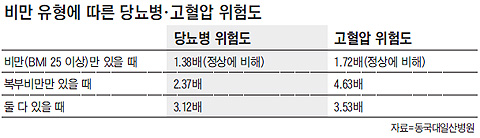 'º¹ºÎºñ¸¸Çü' ±×·ìÀÌ 'º¹ºÎºñ¸¸+ºñ¸¸Çü' ±×·ì¿¡ ºñÇØ °íÇ÷¾Ð À§Çèµµ°¡ ´õ ³ôÀº ÀÌÀ¯¿¡ ´ëÇØ ¿À ±³¼ö´Â "º¹ºÎºñ¸¸Çü ±×·ì¿¡ ³ëÀÎÀÌ ¸¹ÀÌ ¼ÓÇØ Àֱ⠶§¹®"À̶ó°í ºÐ¼®Çß´Ù. ÀÌó·³ º¹ºÎºñ¸¸ÀÇ Áúº´ À¯¹ß À§ÇèÀÌ ³ôÀº ÀÌÀ¯´Â º¹ºÎ ÂÊ Áö¹æ¼¼Æ÷¿¡¼ Ç÷°ü¿¡ ¿°ÁõÀ» ÀÏÀ¸Å°´Â ¹°ÁúÀÌ ºÐºñµÇ°í, Àν¶¸°ÀúÇ×¼º(Ç÷´çÀ» ¼¼Æ÷ ¼ÓÀ¸·Î ¿Å°Ü ¿¡³ÊÁö·Î ¾²°Ô ÇÏ´Â Àν¶¸° È£¸£¸ó ±â´É¿¡ ÀÌ»óÀÌ »ý±â´Â °Í)À» ÀÏÀ¸Å°±â ¶§¹®ÀÌ´Ù. ¿À ±³¼ö´Â "¼ºÀκ´À» ¿¹¹æÇÏ·Á¸é üÁßÀ» Á¤»ó ¹üÀ§ ³»·Î À¯ÁöÇÏ´Â °Í ¸øÁö ¾Ê°Ô ¹î»ìÀ» °ü¸®ÇÏ´Â °Ô Áß¿äÇÏ´Ù"°í °Á¶Çß´Ù.