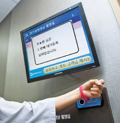 ¼ö°ËÀÚ°¡ RFID Ä«µå¸¦ ÀÌ¿ëÇØ ´ë±â½Ã°£ÀÌ ÂªÀº °Ë»ç½ÇÀ» ãÀ» ¼ö ÀÖ¾î ½Ã°£Àý¾àÀÌ °¡´ÉÇÏ´Ù. / ½ÅÁöÈ£ ÇコÁ¶¼± ±âÀÚ spphoto@chosun.com