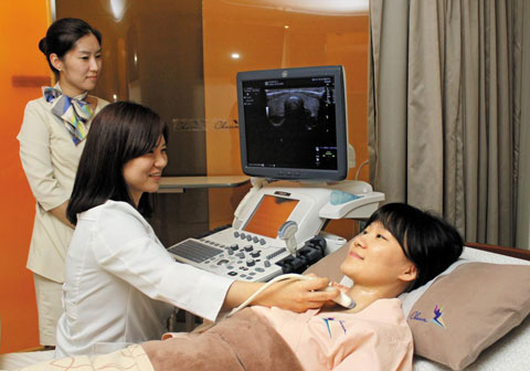 ÇÑ ¿©¼ºÀÌ 1Àη뿡¼ °©»ó¼± ÃÊÀ½ÆÄ °Ë»ç¸¦ ¹Þ°í ÀÖ´Ù. Â÷¿ò¿¡¼´Â ¿©¼º ÁúȯÀ» ÁßÁ¡ÀûÀ¸·Î üũÇÏ´Â ¿¬·Éº° ¿©¼º Æ¯È Á¤¹Ð °ËÁøÀ» ½ÃÇàÇϰí ÀÖ´Ù./Â÷¿ò Á¦°ø