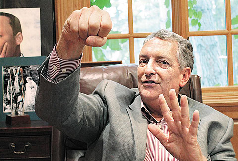 Áö³´Þ 15ÀÏ Weekly BIZ°¡ ã¾Æ°£ ¾ËÆÄÀνà ¿Ü°û¿¡ ÀÖ´Â ±×ÀÇ ÀÚÅÃÀº ÈǸ¢ÇÑ ´ëÀúÅÃÀ̾ú´Ù. °³ÀÎ ¿¬±¸½Ç¿¡¼ ÀÚ¸®¿¡ ¾É±â ¹«¼·°Ô ¾ó¸®Ä¡ ±³¼ö´Â ´ë¶ä "»ó´ç¼ö ±Û·Î¹ú ±â¾÷ CEOµéÀÇ ¸®´õ½Ê ¼öÁØÀÌ Çè³ÇÑ »óȲ¿¡ ¾î¿ï¸®Áö ¾Ê°Ô Çù¼ÒÇϰí õ¹ÚÇÏ´Ù"°í ²¿Áý¾ú´Ù.