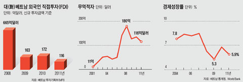 2008³â 665¾ï´Þ·¯·Î »ç»ó ÃÖ°í¸¦ ±â·ÏÇß´ø ¿Ü±¹ÀÎ Á÷Á¢ÅõÀÚ(FDI)´Â Áö³ÇØ 116¾ï´Þ·¯·Î Âɱ׶óµé¾ú´Ù. ¿Ã µé¾î¼µµ 9¿ù±îÁö À۳⠰°Àº ±â°£¿¡ ºñÇØ 30% °¡±îÀÌ ÁÙ¾ú´Ù. ¹Ý´ë·Î ¿Üä¿Í ¹«¿ªÀûÀÚ´Â ´«µ¢ÀÌó·³ ºÒ°í ÀÖ´Ù. S&P, ¹«µð½º °°Àº ±¹Á¦ ½Å¿ëÆò°¡È¸»çµéÀº º£Æ®³²¿¡ ´ëÇÑ ±¹°¡ ½Å¿ëµî±ÞÀ» Á¤Å©º»µå(ÅõÀÚ ºÎÀû°Ý) ¼öÁØÀ¸·Î ÀÌ¹Ì ³·Ãè´Ù. ¼¼°è°æÁ¦Æ÷·³(WEF)ÀÌ ¿Ã 9¿ù ¹ßÇ¥ÇÑ '±¹°¡°æÀï·Â Æò°¡'¿¡¼ º£Æ®³²Àº Áö³Çغ¸´Ù 10°è´Ü ¹Ì²ô·¯Áø 75À§·Î Ãß¶ôÇß´Ù. ÀÀ¿ì¿º Ǫ ÂÐ °ø»ê´ç ÃѼ±â´Â Áö³´Þ ´ç Áß¾ÓÀ§¿øÈ¸¿¡¼ "´ç¿øµéÀÇ ºÎÆÐ¿Í Ÿ¶ôÀ» ¸·Áö ¸øÇß°í ±¹¿µ±â¾÷¿¡ ´ëÇÑ °ü¸®¡¤°¨µ¶ÀÌ ¼ÒȦÇß´Ù"¸ç °ø°³ »ç°úÇß´Ù. ÃÑüÀûÀÎ À§±â ºÐÀ§±â°¡ ¿ª·ÂÇÏ´Ù.