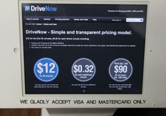 ¹Ì±¹ »÷ÇÁ¶õ½Ã½ºÄÚ µå¶óÀÌºê ³ª¿ì(Drive Now) Àü±âÂ÷ ´ë¿© °¡°ÝÇ¥. ÃÖÃÊ 30ºÐ±îÁö 12´Þ·¯À̸ç, ÀÌÈÄ 1ºÐ´ç 32¼¾Æ®°¡ Ãß°¡µÈ´Ù. ÇÏ·ç ´ë¿© ¿ä±ÝÀº ÃÖ°í 90´Þ·¯. /±è´öÇÑ ±âÀÚ
