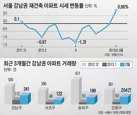 °³²±ÇÀ» Áß½ÉÀ¸·Î ÁÖÅà °Å·¡·®µµ ¼¼È÷ ´Ã°í ÀÖ´Ù. ¼¿ï ºÎµ¿»êÁ¤º¸±¤Àå¿¡ µû¸£¸é, ¼¿ï Àüü ¾ÆÆÄÆ® °Å·¡·®Àº 1¿ù 1179°Ç¿¡¼ Áö³´Þ 2646°ÇÀ¸·Î Áõ°¡Çß´Ù. °°Àº ±â°£ °³²4±¸(°³²¡¤¼ÃÊ¡¤¼ÛÆÄ¡¤°µ¿±¸)ÀÇ ¾ÆÆÄÆ® °Å·¡·®Àº 756°ÇÀ¸·Î 1¿ù(273°Ç)º¸´Ù 3¹è °¡±îÀÌ·Î ´Ã¾î ¼¿ï Àüüº¸´Ù »ó½ÂÆøÀÌ ÄÇ´Ù. Áö³´Þ ±¹È¸ ÇàÁ¤¾ÈÀüÀ§¿øÈ¸°¡ ÁÖÅà Ãëµæ¼¼ °¨¸é ±âÇÑÀ» ¿ÃÇØ 6¿ù±îÁö ¿¬ÀåÇÏ´Â ¾ÈÀ» Åë°ú½ÃŲ ¿©ÆÄ´Ù. º»È¸ÀDZîÁö Åë°úÇϸé 1¿ù °Å·¡ºÎÅÍ ¼Ò±Þ Àû¿ëµÉ Àü¸ÁÀÌ´Ù.