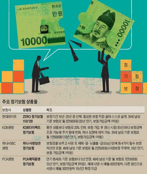 ÀåÁ¡Àº Àú·ÅÇÑ º¸Çè·á´Ù. Á¾½Åº¸Çè¿¡ °¡ÀÔÇÑ 30´ëÀÇ °æ¿ì »ç¸Áº¸Çè±Ý 1¾ï¿øÀ» º¸Àå¹ÞÀ¸·Á¸é ¸Å¿ù 20¸¸¿ø Á¤µµ¸¦ ³»¾ß ÇÑ´Ù. ÇÏÁö¸¸ Á¤±âº¸Çè¿¡ °¡ÀÔÇÑ´Ù¸é º¸Çè·á¸¦ Àý¹Ý ÀÌÇÏ·Î ÁÙÀÏ ¼ö ÀÖ´Ù. Àú·ÅÇÑ º¸Çè·á·Î ÀÏÁ¤ ±â°£ µ¿¾È ÇǺ¸ÇèÀÚ°¡ »ç¸Á ½Ã Á¾½Åº¸Çè°ú ¶È°°Àº º¸ÀåÀ» ¹ÞÀ» ¼ö ÀÖ¾î ½Ç¼ÓÆÄ¿¡°Ô À¯¸®ÇÏ´Ù.